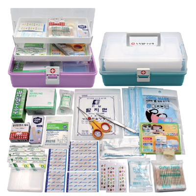 | 기타사항 | 과산화수소, 절솜대, 붕대소, 탈지면, 가위, 핀셋, 일회용마스크3장, 쿨마스크, 위생장갑, 알콜스틱, 100p면봉, 멸균거즈, 칼라밴드4p, 손끝밴드2p, 방수밴드2p, 관절밴드2p, 반창고, 8p밴드, 드레싱밴드, 알콜솜6p, 상비약통, 지샤크2p ※밴드이미지는 변경될수있음 |