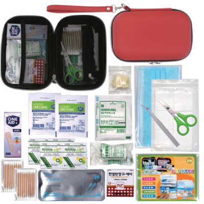 | 기타사항 | 10P면봉*2, 반창고, 위생장갑, 붕대소, 8P밴드, 드레싱밴드*2, 알콜솜4P, 1회용 마스크, 6P절솜, 스틱알콜, 가위, 핀셋, 지샤크, 멸균거즈 ※밴드이미지는 변경될수있음 |
