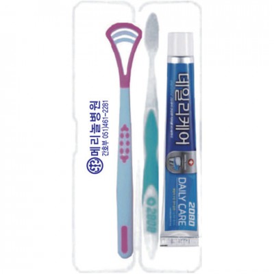 | 기타사항 | •Size : 200×45×30㎜ •2080치약50g,2080칫솔,실리콘혀크리너 ※구성품 교체 가능 / 칼라인쇄시 100원추가 (종이케이스별도 100원) |