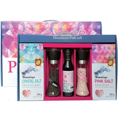 | 기타사항 | •구성품 : 크리스탈솔트(지퍼백) 250g / 핑크솔트 (지퍼백) 250g / 참치어간장 250ml / 통후추(그라인더) 80g / 핑크솔트(그라인더)180g •1C/T = 6ea size = 25.7X41cm |